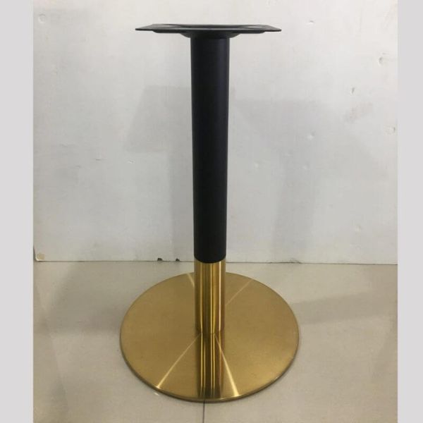 Phần chân trụ và đế dưới được mạ màu vàng xước (brushed gold) tinh tế, tăng thêm vẻ sang trọng và ấm cúng cho không gian.