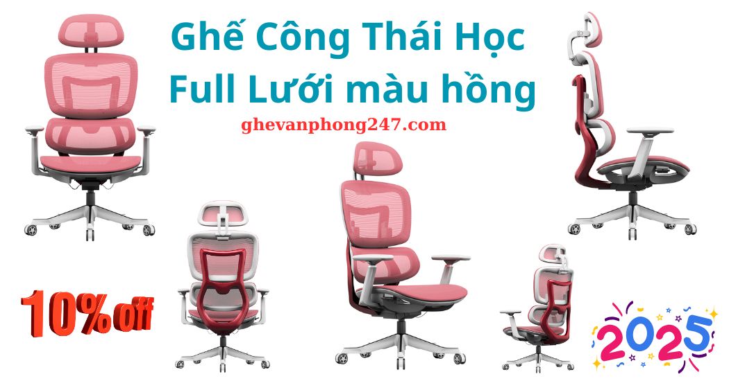 🔥 Ưu Đãi SỐC: Mừng năm mới 2025, Quý khách hàng sẽ nhận ngay GIẢM GIÁ 10% khi đặt mua Ghế Công Thái Học Full Lưới Màu Hồng KG – 872 ngay hôm nay!