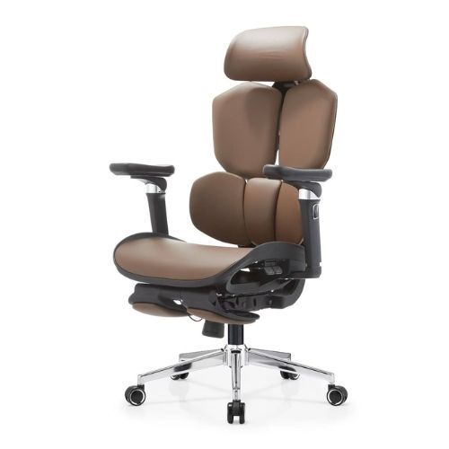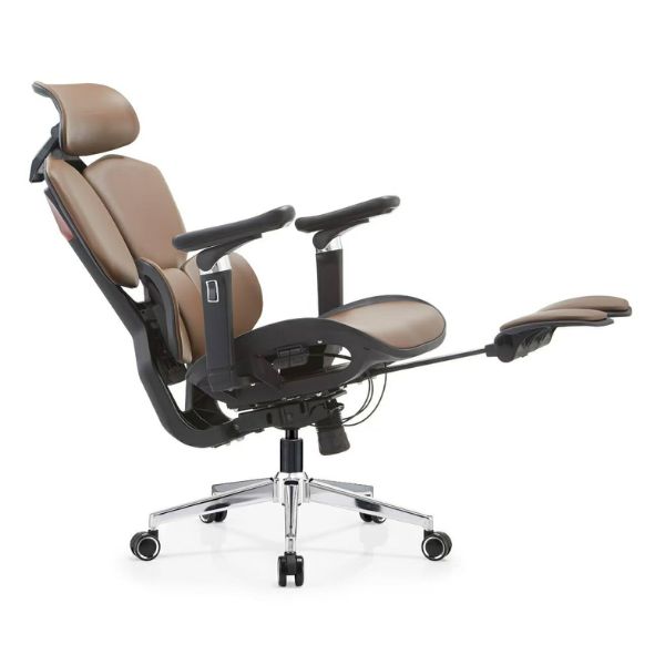3. Người Yêu Thích Nội Thất Đẳng Cấp: Ghế sở hữu thiết kế hiện đại, màu da nâu, đen, xám sang trọng, nâng tầm không gian làm việc.