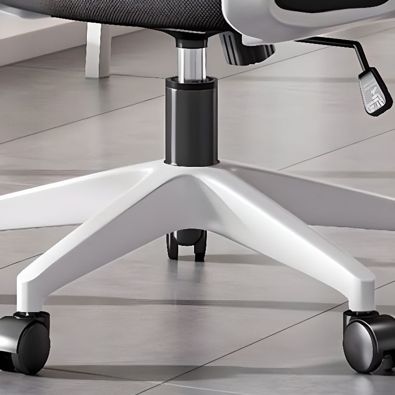 | Chân Xoay Bền Bỉ | Chân ghế hình sao chắc chắn bằng nhựa trắng chịu lực, trang bị bánh xe PU di chuyển êm ái, không gây tiếng ồn. | Dễ dàng di chuyển trong khu vực làm việc mà không làm trầy xước sàn nhà. |