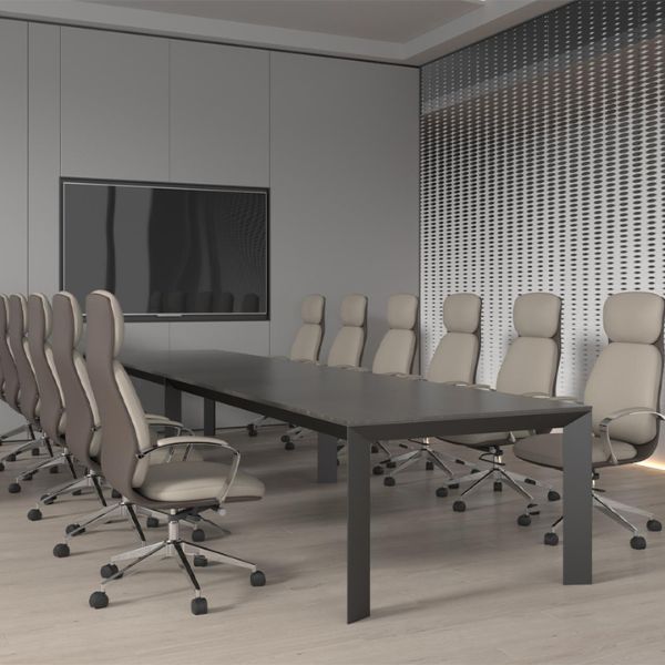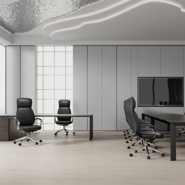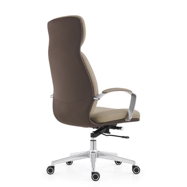 Cấu tạo lưng ghế: Thiết kế lưng cao (High back) với phần tựa đầu dày dặn, ôm trọn đường cong cột sống, giúp giảm thiểu mệt mỏi và căng thẳng trong các buổi họp kéo dài hàng giờ.