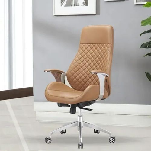 • Chất liệu Da Cao Cấp: Bề mặt ghế được bọc bằng chất liệu da PU cao cấp (hoặc da thật tuỳ chọn) với màu Nâu Da Bò/Caramel ấm áp, lịch lãm, dễ dàng vệ sinh và có độ bền vượt trội. Da càng dùng càng mềm mại và bóng đẹp.