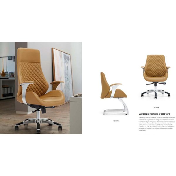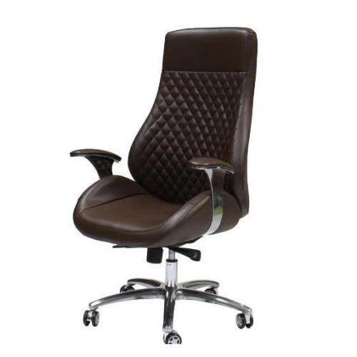 • Tay Vịn và Chân Mạ Chrome: Tay vịn kiểu dáng hiện đại, được ốp kim loại mạ Chrome sáng bóng, kết hợp với chân sao xoay 360 độ bằng thép mạ Chrome chắc chắn, tạo nên sự vững chãi và vẻ ngoài thời thượng, chuyên nghiệp.