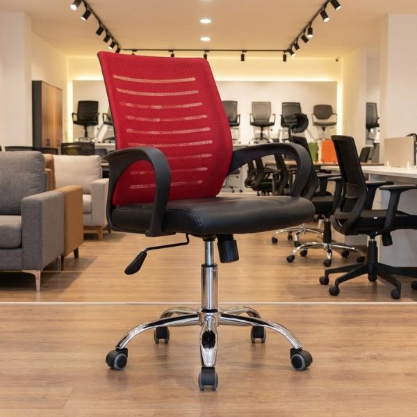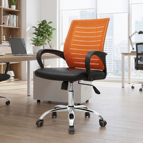 Lưng ghế bọc lưới chịu lực, thoáng khí, dễ dàng vệ sinh.